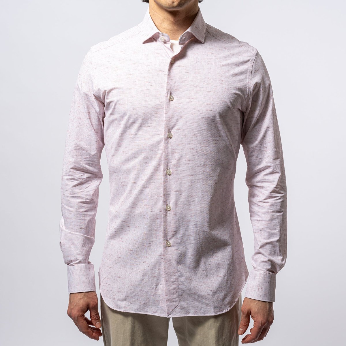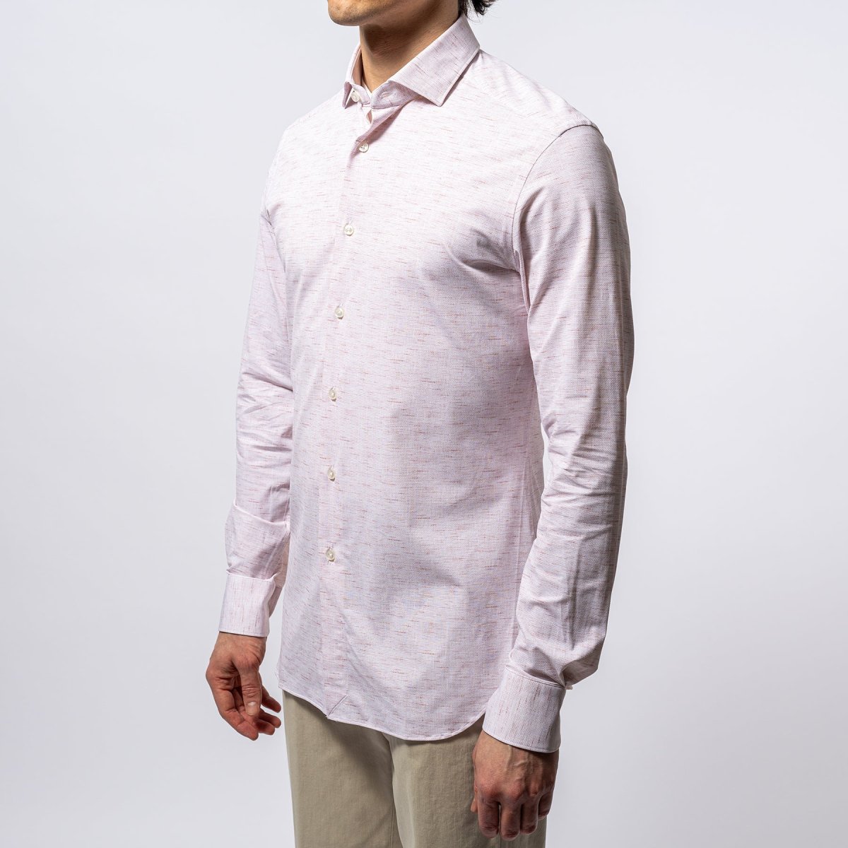 • Skjortan stängs med pärlemoknappar och har en klassisk krage. Skjortan är svagt slimmad i modellen.