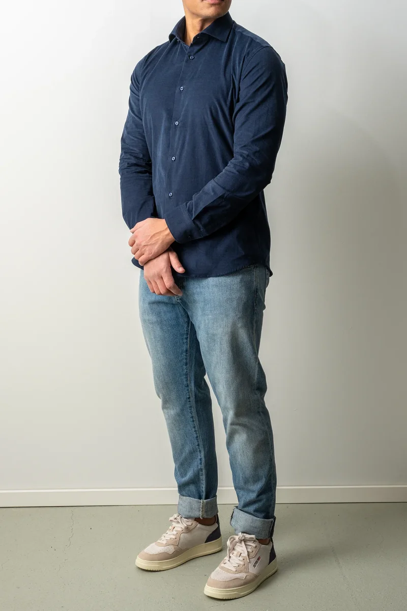 Skjortan från Adverb är ett stilrent basplagg med fokus på komfort och kvalitet. Tillverkad i mjuk bomull med baby cord-struktur får materialet en följsam känsla och ett diskret texturerat uttryck som passar säsongen.