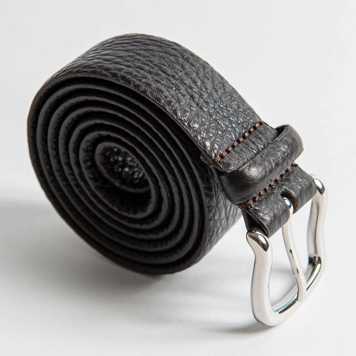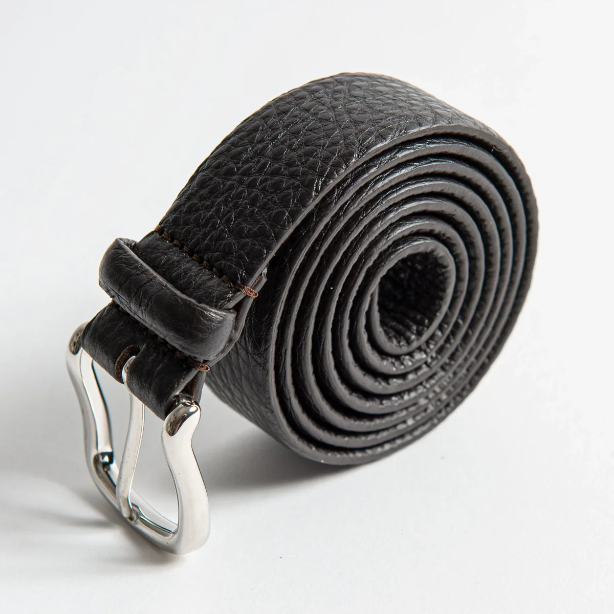 • Bältet är i ett slätt läder och är normalbrett.