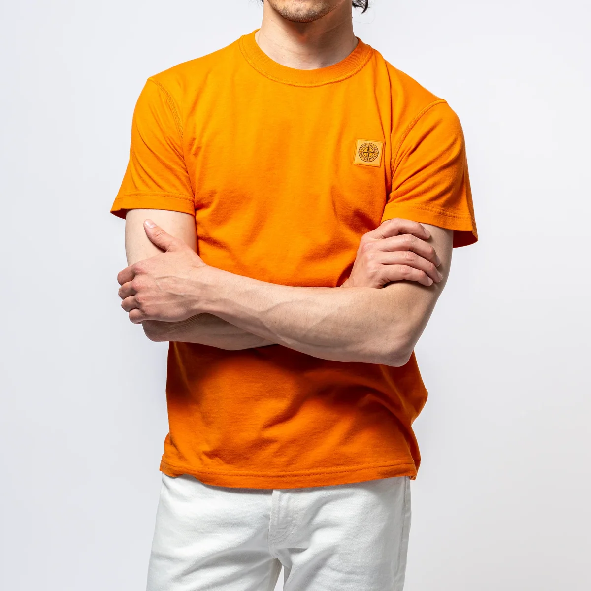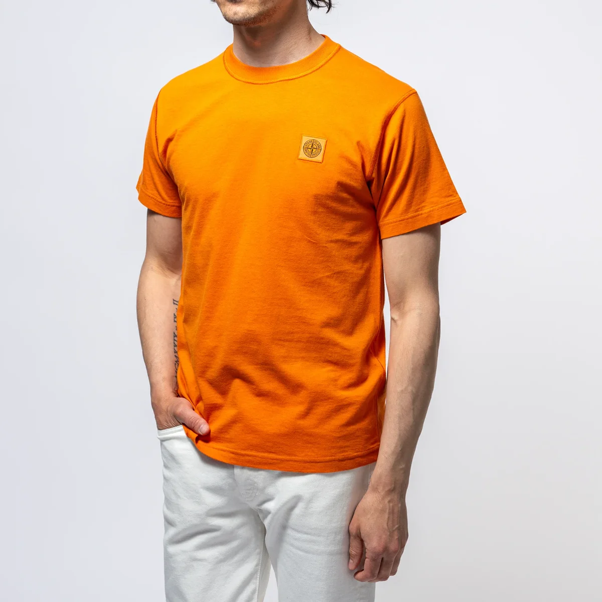 • T-shirten har Stone Islands ikoniska logga på vänster bröst.