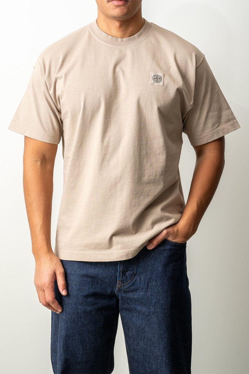 Diskret patch på bröstet sätter en tydlig Stone Island-signatur och gör T-shirten lätt att matcha med jeans eller chinos för en modern fritidslook.