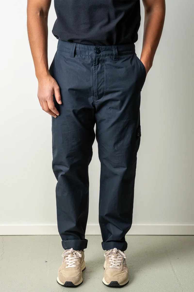 Stone Island Ghost presenterar dessa stilrena canvasbyxor i navy blue, designade för en tidlös och funktionell look. Tillverkade i slitstark bomull erbjuder de hög komfort, bra andningsförmåga och en mjuk känsla som passar perfekt för vardagens alla moment.