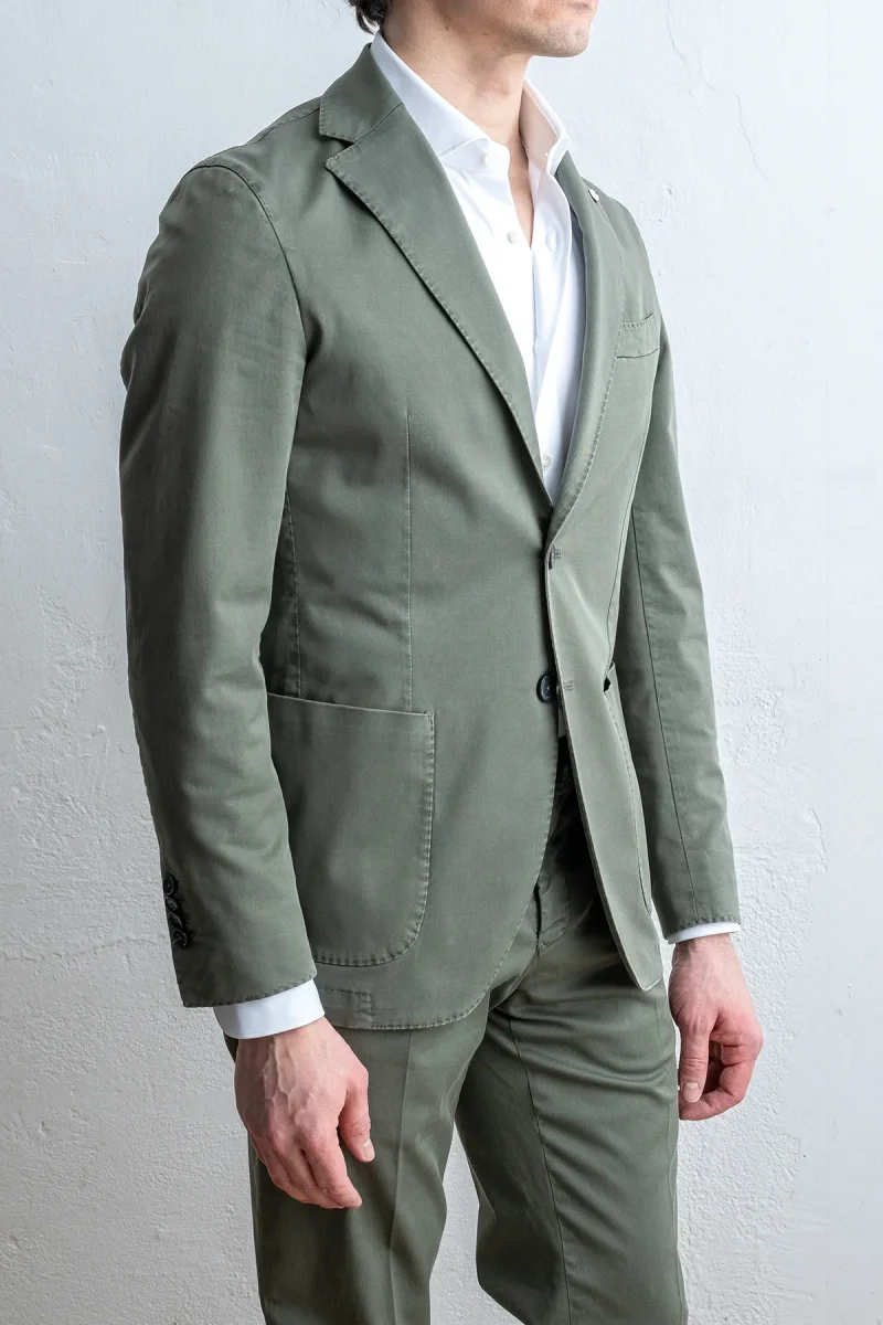 • Kostymen är sydd i en fin bomulls kvalité med inslag av elastan, kostymen är tvättad i färgen.