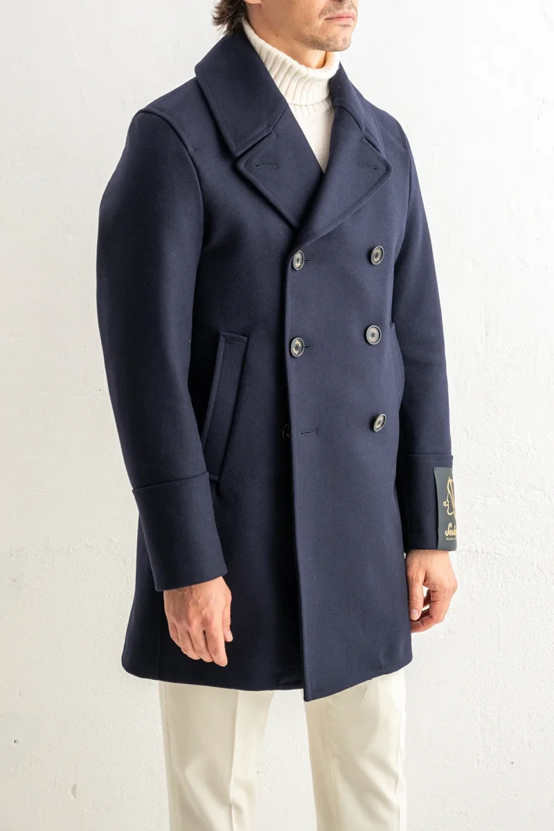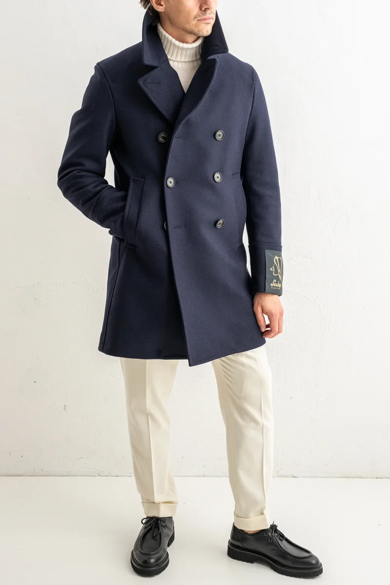 Italienska Sealup presenterar en klassisk peacoat i exklusiv ull som kombinerar italiensk hantverkstradition med tidlös stil. Den djupa navyfärgen ger ett elegant intryck som passar både vardag och festliga tillfällen.