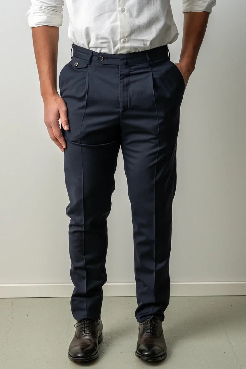 PT Torino presenterar en elegant byxa i färgen Navy som kombinerar italienskt hantverk med tidlös stil. Tillverkad i fin ull erbjuder den en mjuk känsla och naturlig andningsförmåga, vilket gör den lika bekväm som sofistikerad.