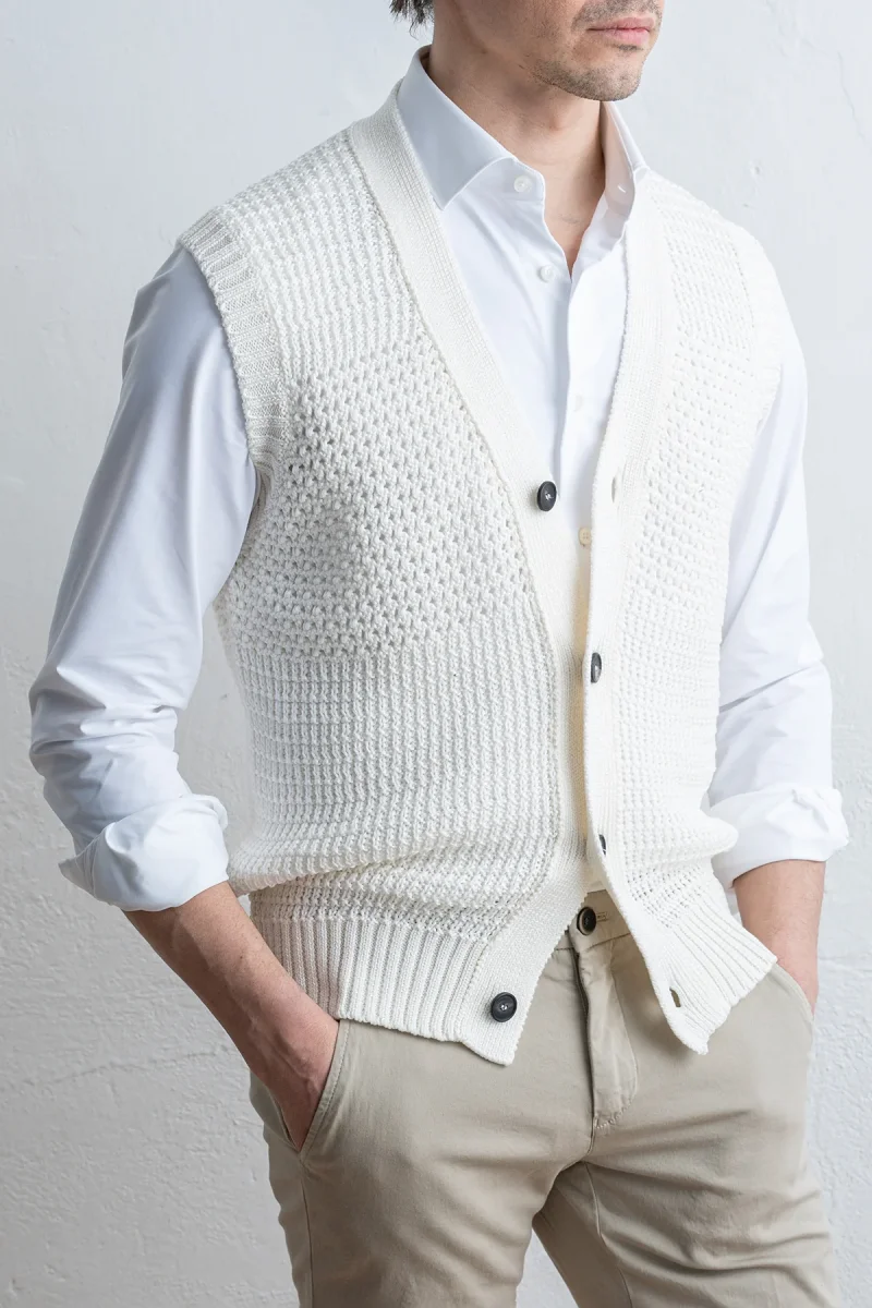 • Västen har en härlig struktur med stora pärlemorknappar som ger det lilla extra.
