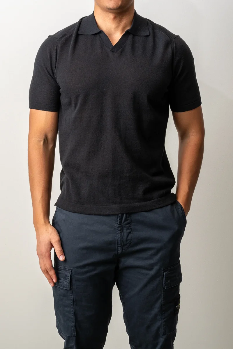 Adverb presenterar en stilren piké i klassisk svart – ett mångsidigt plagg som kombinerar tidlös design med modern komfort. Den är tillverkad i mjuk bomull som andas och ger en behaglig känsla mot huden, perfekt för vardagligt bruk.