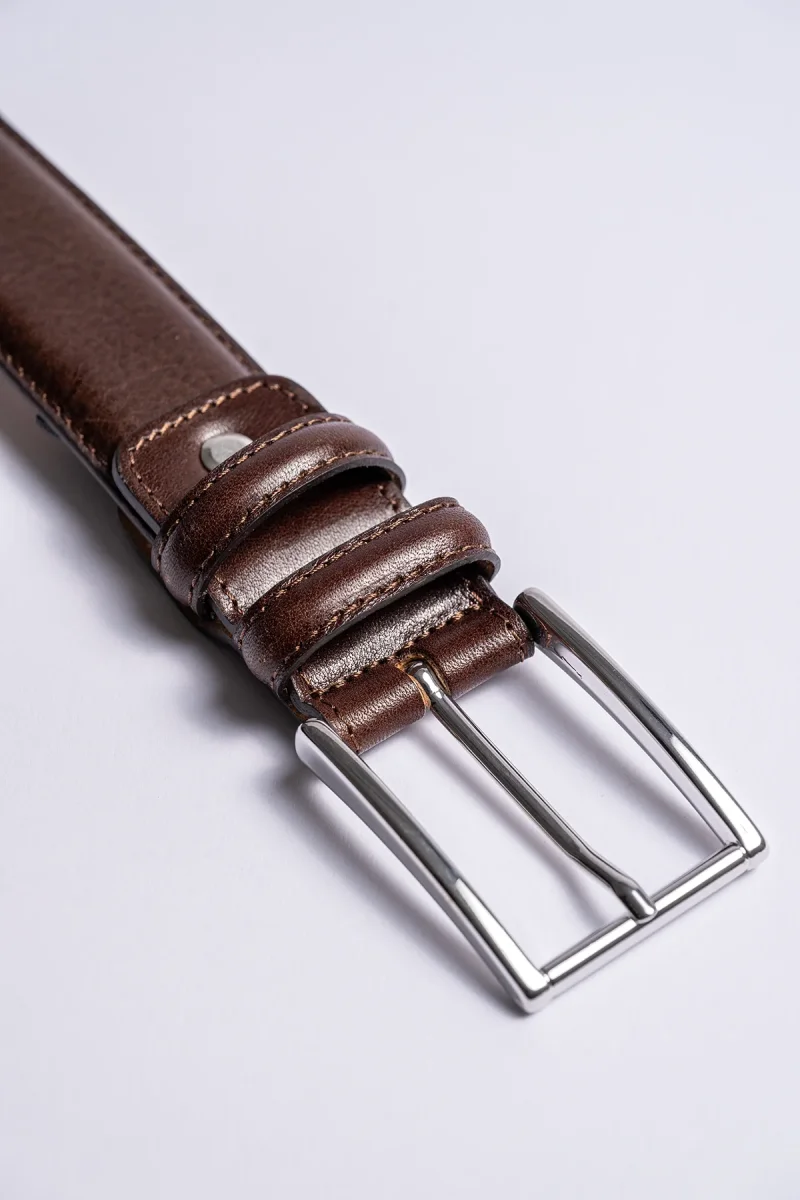 Den släta strukturen skapar en stilren detalj som gör bältet lika självklart till kostymbyxor som till chinos eller jeans. Perfekt för både vardag och business ger detta bälte en sofistikerad touch till varje outfit.