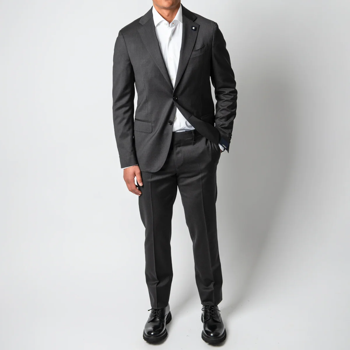 • En kostym uppsydd av italienska proffsen hos Lardini.