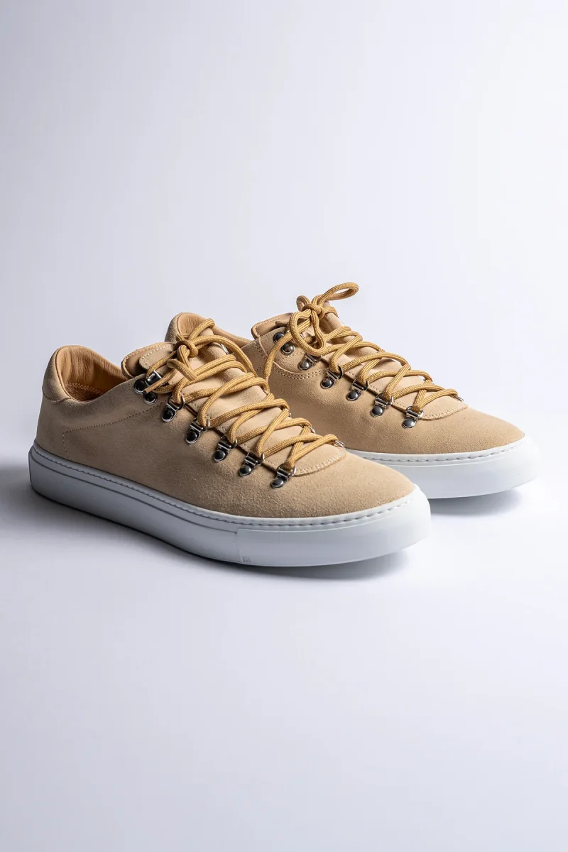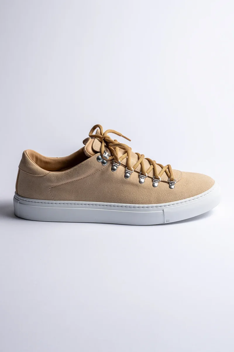 Diemme presenterar ett par sneakers som kombinerar tidlös design med modern funktionalitet. Tillverkade i exklusiv mocka och mjukt läder i en elegant beige sandton ger de ett sofistikerat uttryck som enkelt matchas med både avslappnade och mer dressade looks.