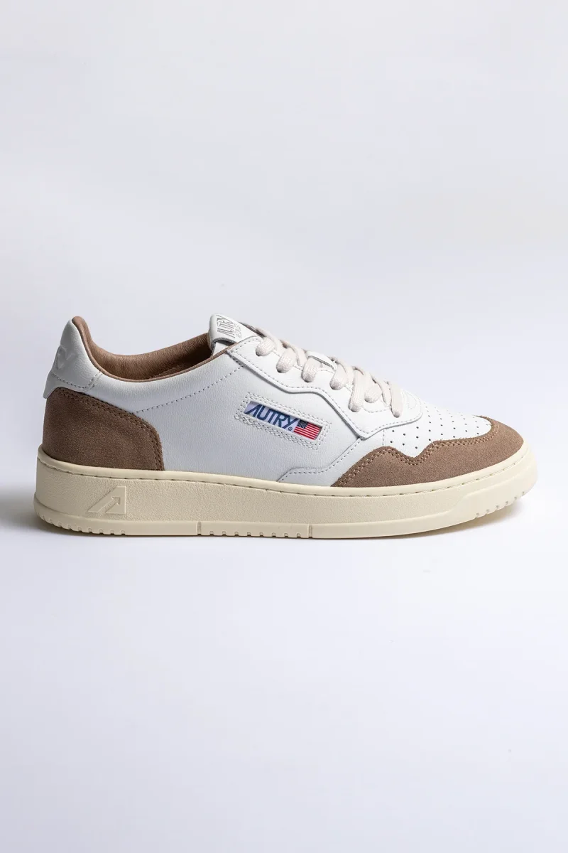 Autry sneakers i färgen white/antilope kombinerar en tidlös silhuett med exklusiva materialval. Ovandelen är tillverkad i skinn och mjuk mocka som ger en lyxig känsla och ett stilrent uttryck, perfekt för dig som söker moderna sneakers med retroinspirerad design.