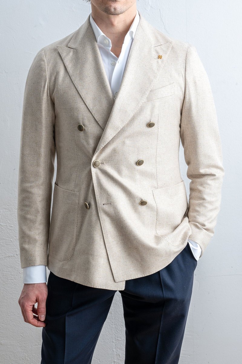 • En dubbelknäppt linne blazer från Italienska Tagliatore.