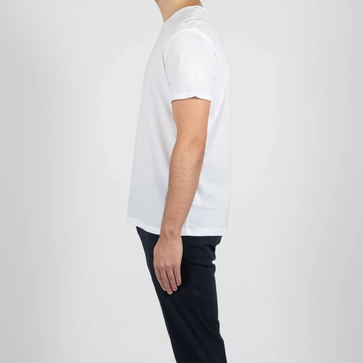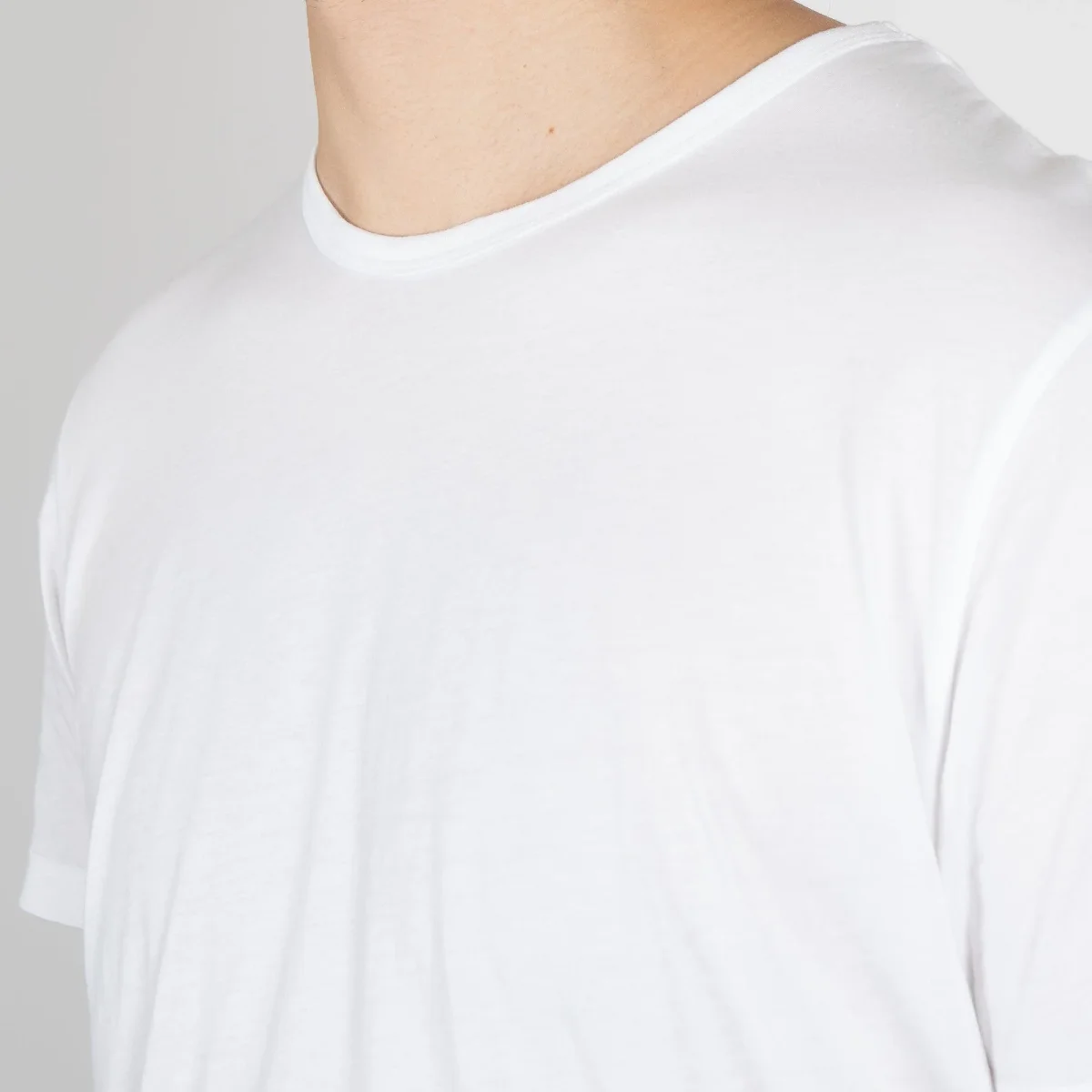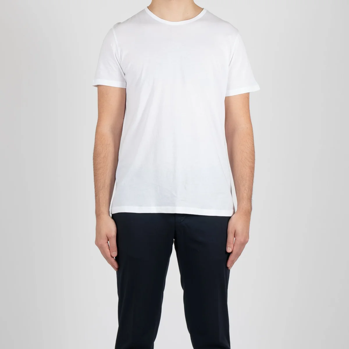 • T-shirten är rundhalsad med en smal rundning och fint sydda stygn runt kragen. T-shirten är normallång och går att bära både instoppat samt utanpå.