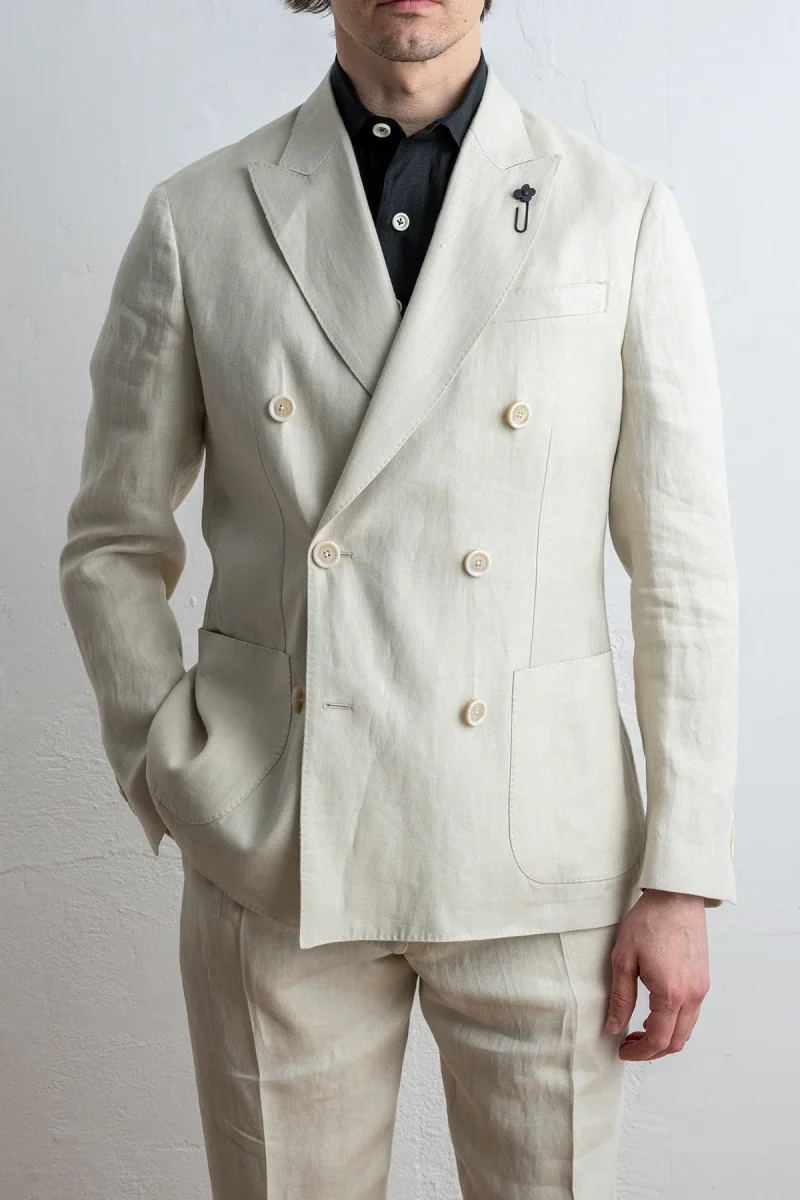 • En dubbelknäppt linne kavaj från italienska Lardini.