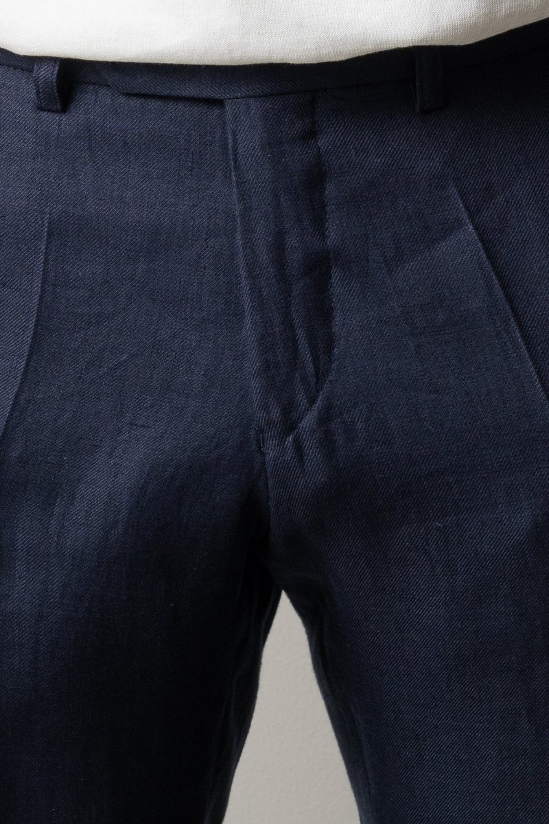 Tillverkad i svalt och naturligt linne erbjuder byxan hög komfort och god andningsförmåga. Materialet gör den särskilt lämpad för varmare dagar samtidigt som det behåller en exklusiv känsla.