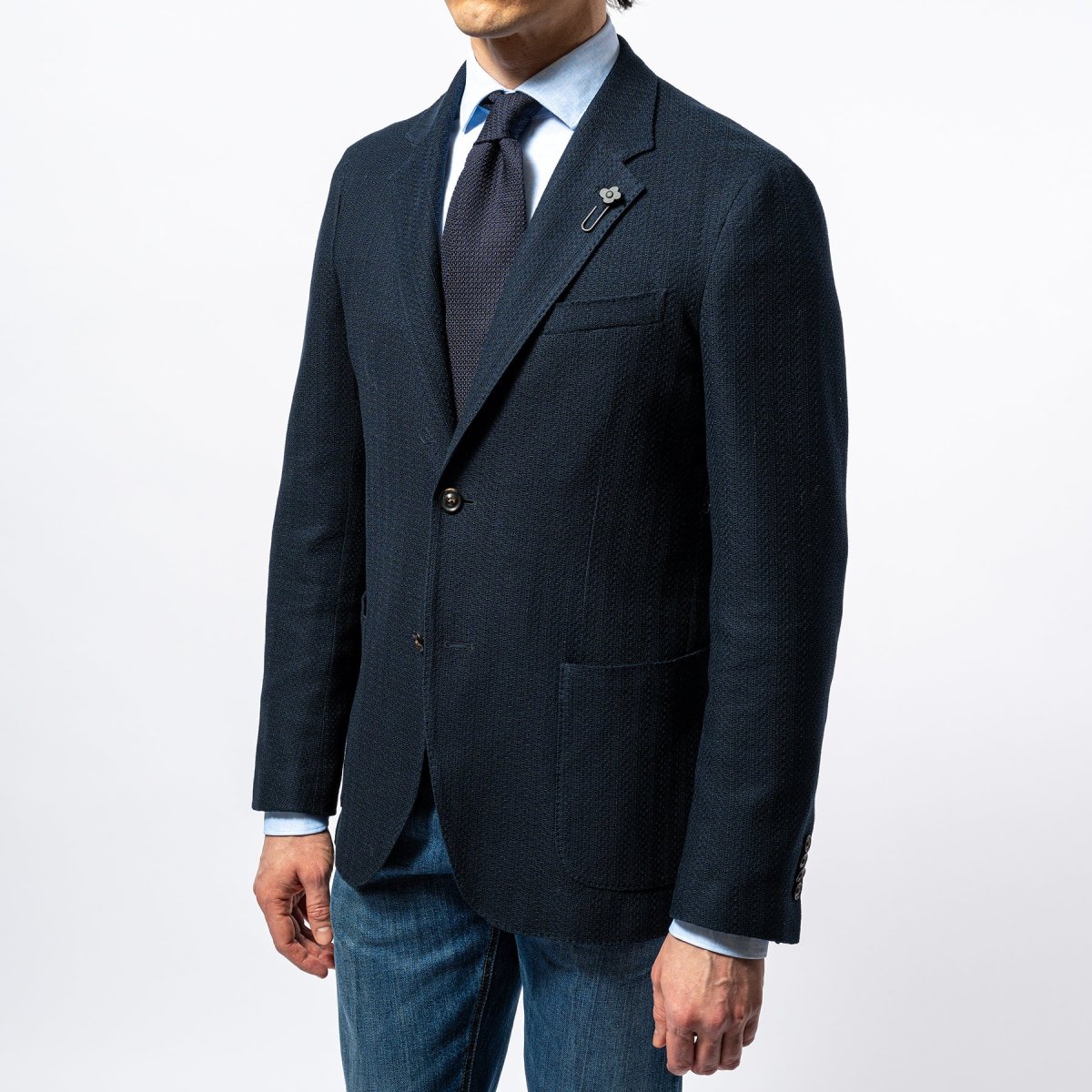 • Kavajen stängs med matchande pärlemoknappar och har två stycken lappade sidfickor samt en bröstficka. Kavajen är lätt avslappnad i passformen.