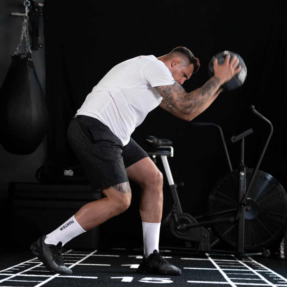 Die Phantom performance Crew-Socken sorgen für Tragekomfort beim Sport sowie in der Freizeit. Schweißableitende Struktur und Arch-Support sorgen für eine sichere Passform und ein angenehmes Tragegefühl. Schlichte, weiße Socken mit schwarzen Schriftzügen auf den Außen- und Unterseiten.
