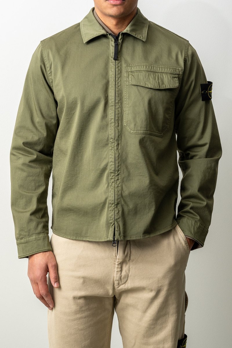 Stretch Organic Cotton Satin Overshirt 1200015 MILITARY GREEN