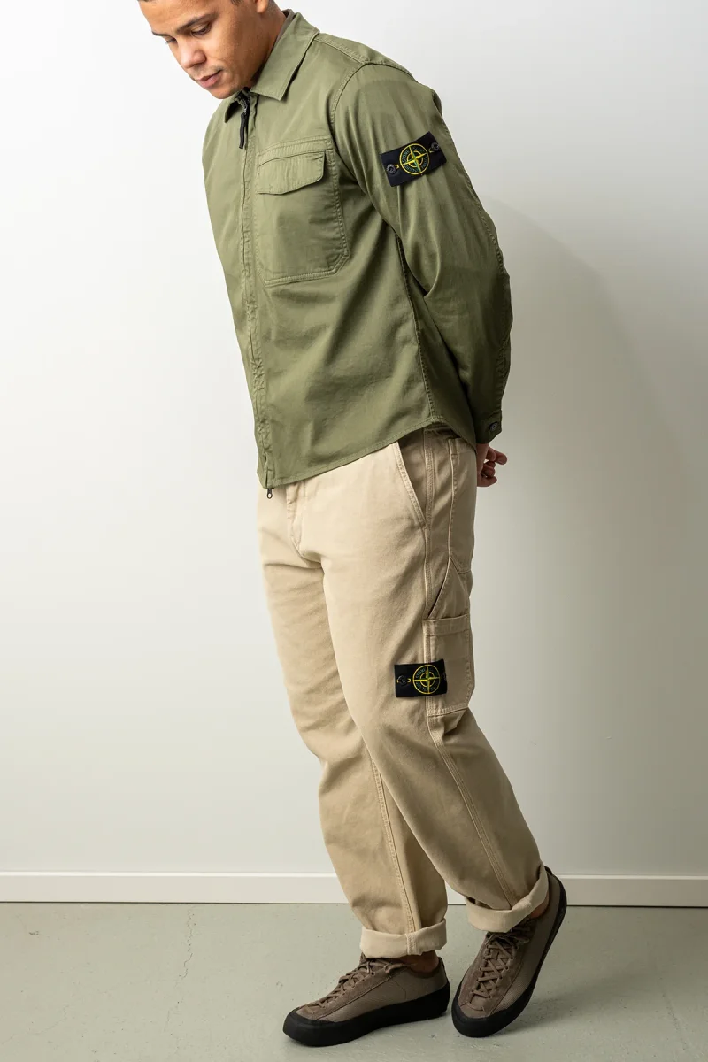 Designen är utrustad med klassisk krage, bröstficka och dubbel dragkedja framtill för praktisk funktion. På ärmen sitter det ikoniska Stone Island-märket som ger plagget en tydlig signaturdetalj.