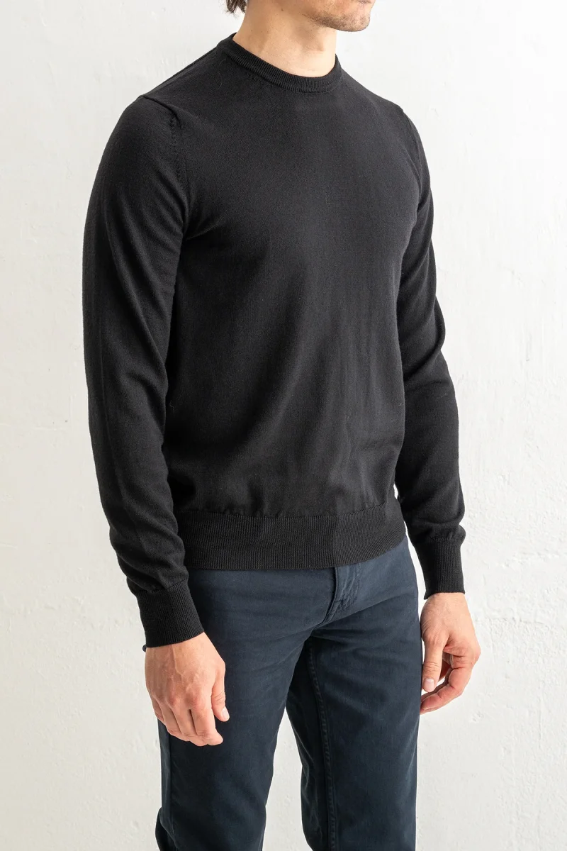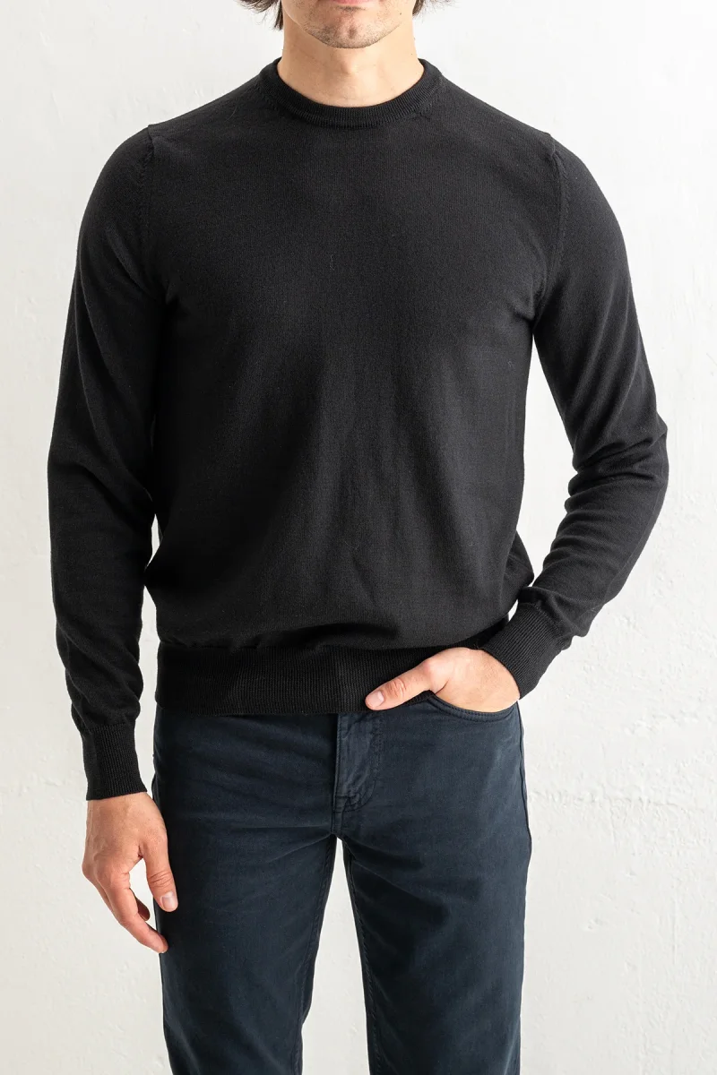 Vårt egna Adverb presenterar en stilren tröja i exklusiv merinoull som kombinerar tidlös design med överlägsen komfort. Den svarta färgen ger en sofistikerad bas som enkelt matchas med både chinos och jeans för en modern vardagslook.
