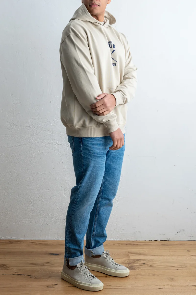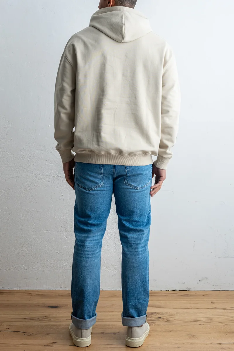• Hoodien är ganska rak och avslappnad i modellen med genomgående midjeficka.