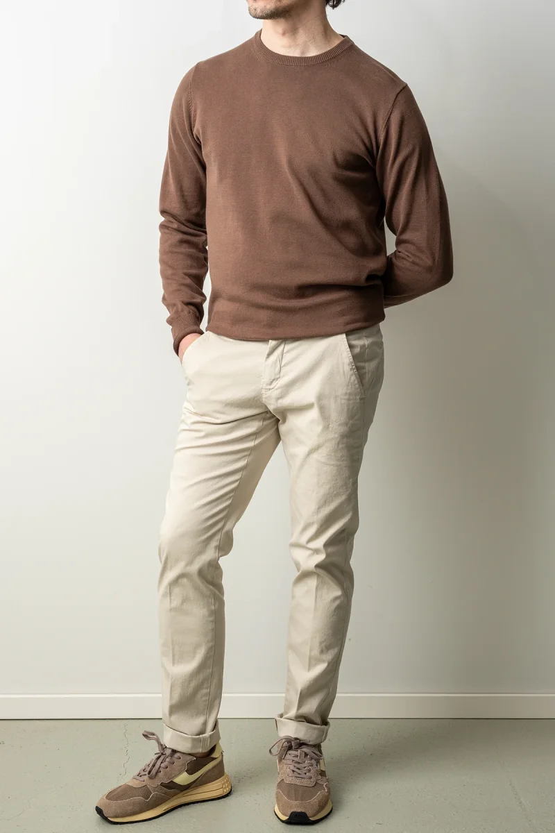 Byxorna är något slim fit som ger en balanserad silhuett men ändå bekväm rörelsefrihet med elastan i tyget. Passformen sitter naturligt över höft och ben, vilket skapar en stilren och modern look.