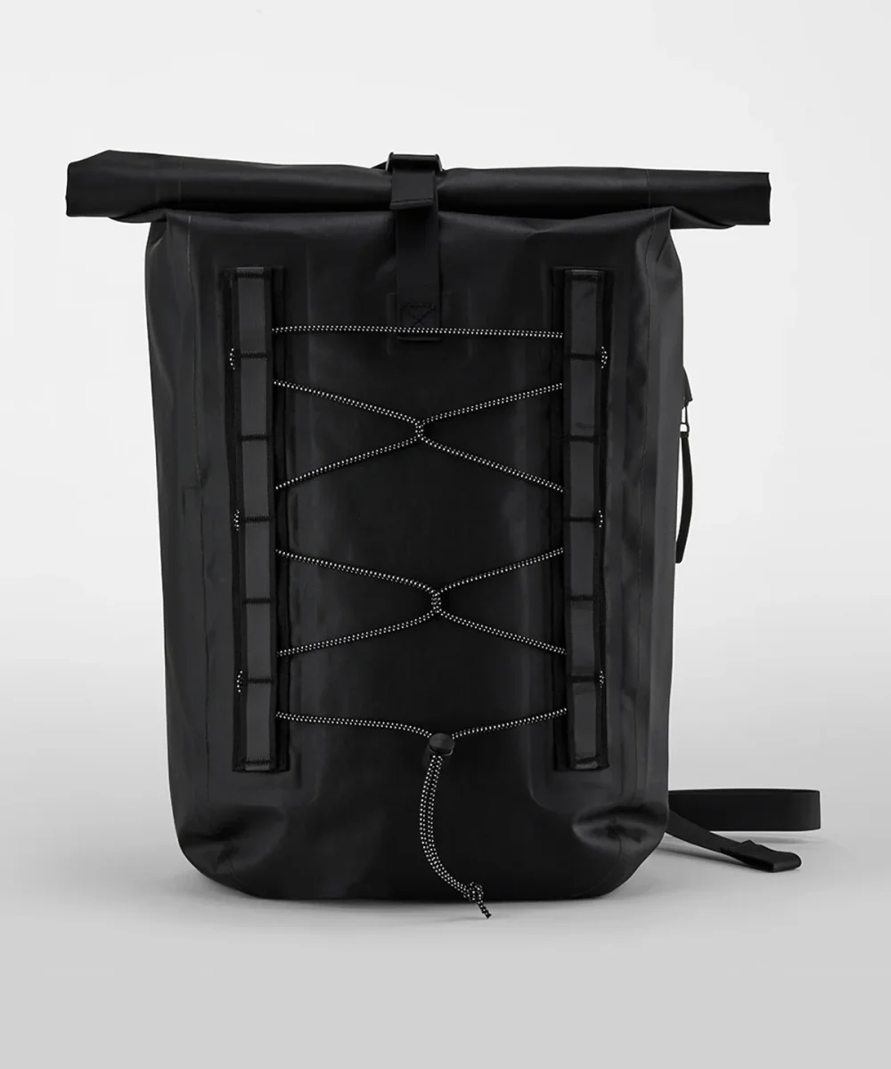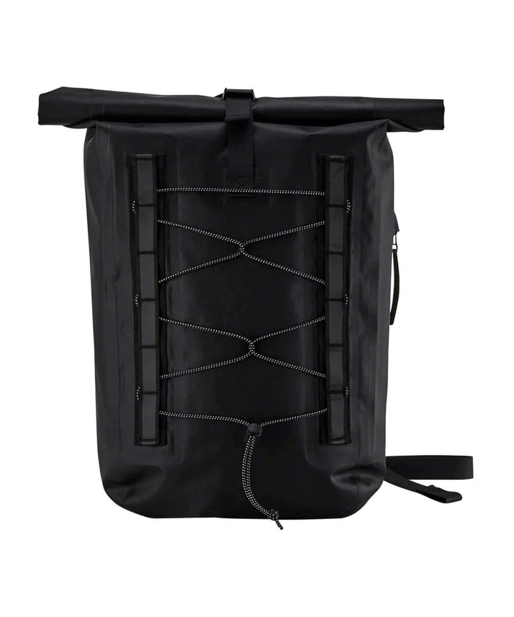 Den är tillverkad av ett väderbeständigt material med PU-beläggning, vilket skyddar dina tillhörigheter oavsett väder. Rullstängningen erbjuder en säker och stilren lösning som håller allt på plats. Reflexdetaljerna ökar din synlighet och säkerhet, särskilt vid cykling i sämre ljus.