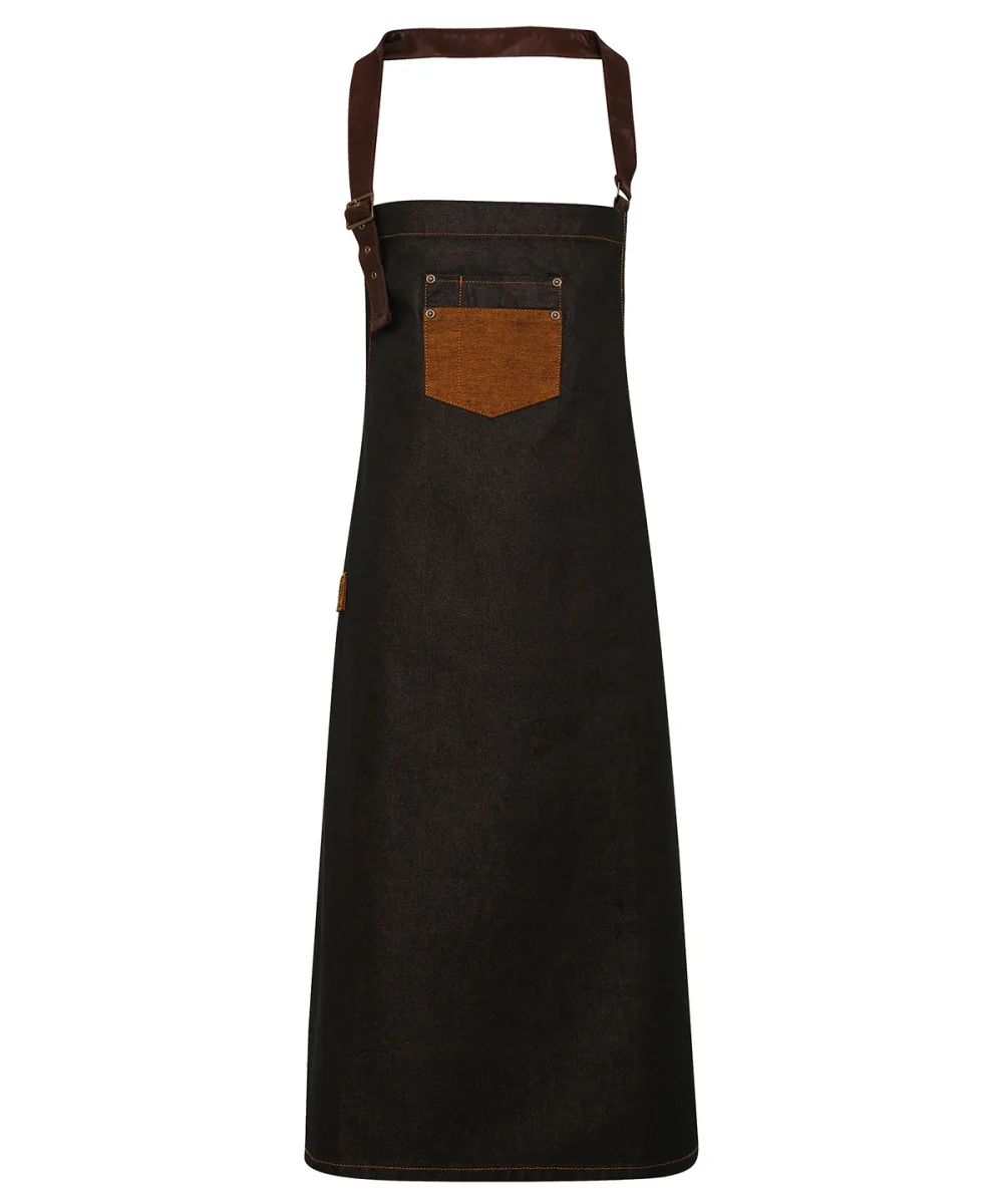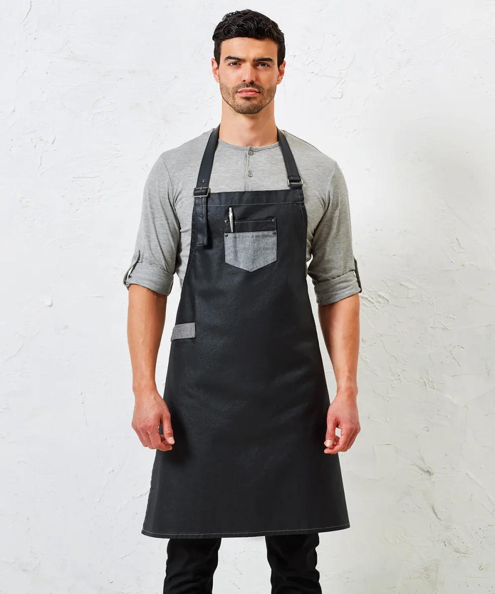 Vaxat förkläde med haklapp i denim och konstläder från Division
